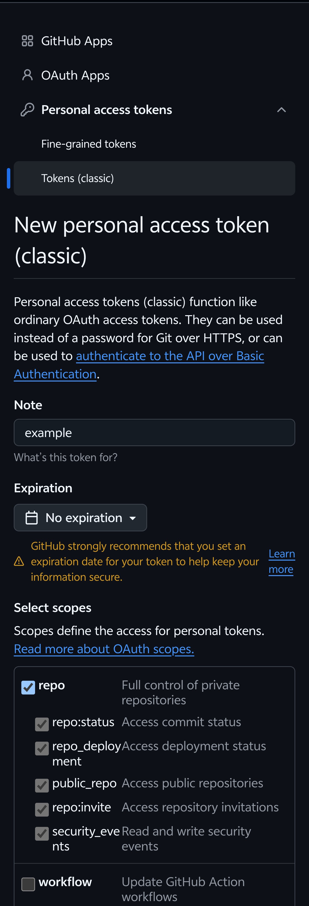 - 进入GitHub的「Settings → Developer settings → Personal access tokens」,选择**「Generate new token (classic)」**(重点!选“classic”,新版token可能导致PicGo无权访问):