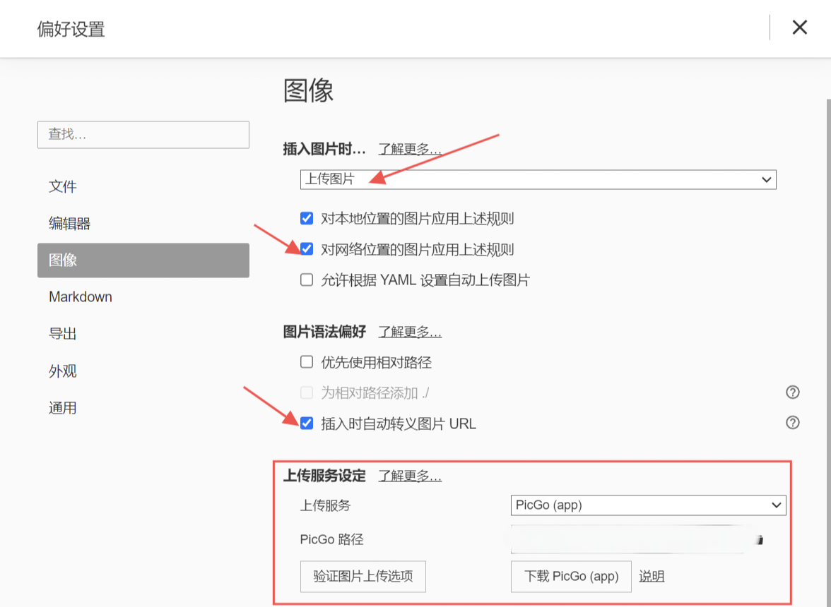 - 「PicGo路径」选择本地的「PicGo.exe」文件(如