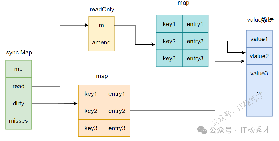 Load(key any) (value any, ok bool) | 查询键值对,返回值 + 是否存在 |