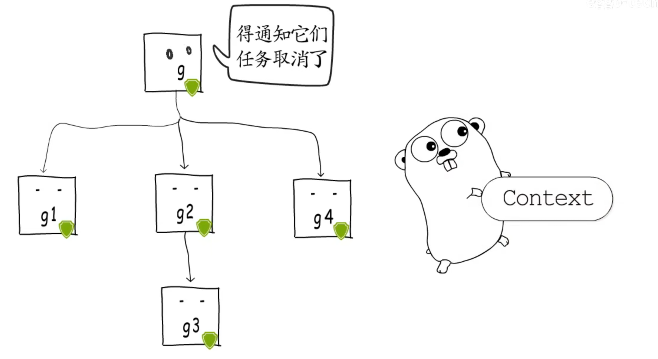 - 主动取消,通过context.WithCancel 创建的context会返回一个cancel函数,调用就会关闭内部的done channel, 所有监听这个context的goroutine都能通过ctx.Done()收到取消信号