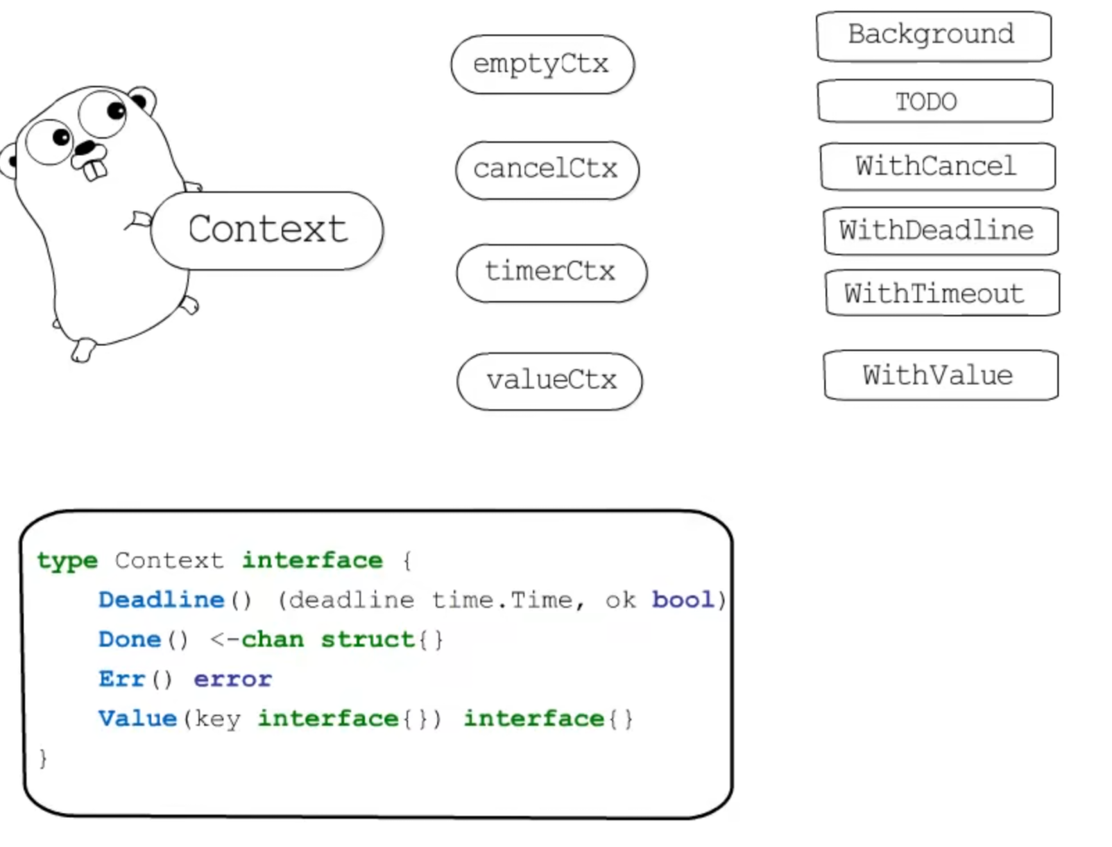 context包的主要内容可以概括为:一个接口,四种具体实现,四个方法,六个函数